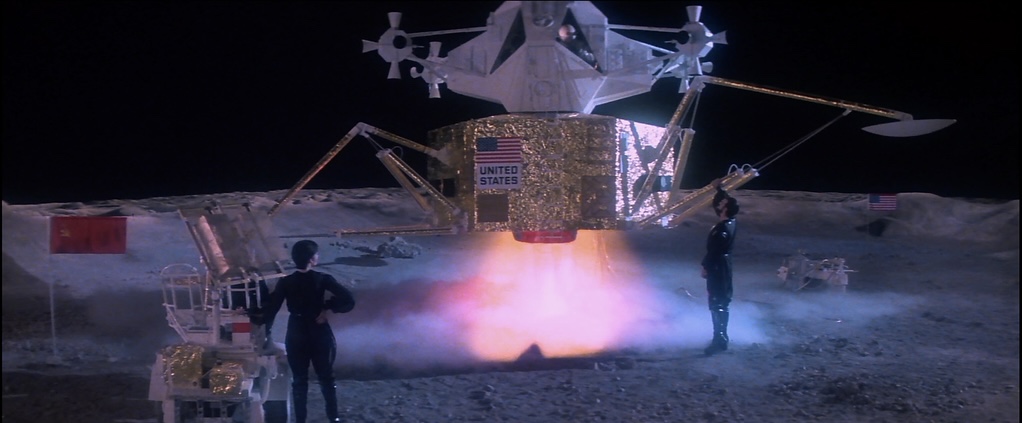 0:25:17 – 0:25:21 (exterior of lunar surface) – Donner footage with Lester-directed voiceovers (0:04). The voiceovers of John Morton and Shane Rimmer were overseen during Richard Lester’s tenure on the film in 1979-80.
