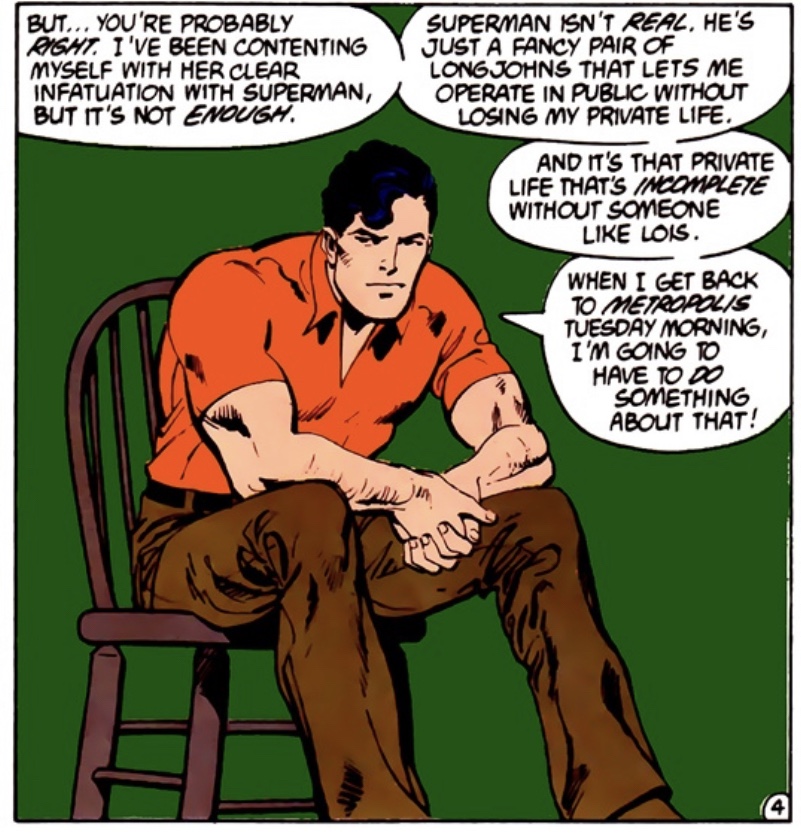Another change that occurs in the script is that Edge’s lines to Lois about reading the wrong weather report are now given over to Perry White in this draft. Furthermore, we are now treated to a warmer, more casual side of Morgan Edge, as he regards Perry White with respect as a senior executive of the Galaxy Communications team, even through his gruffness.