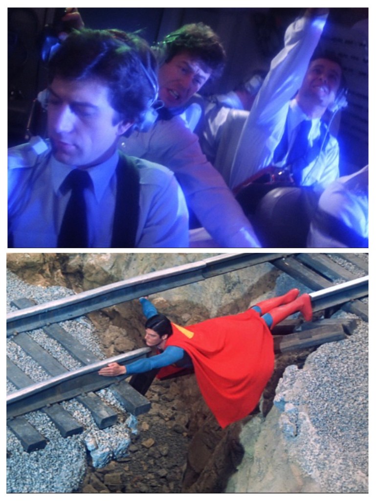 By the latter half of the month, Richard Donner had already filmed the interior portions of the Air Force One cockpit and the live action portions of Superman holding up the railing of the broken train tracks. (The background plate for the latter shot would be filmed a few months later.)