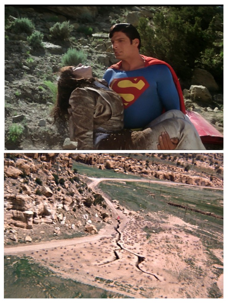 Donner, Christopher Reeve, Margot Kidder, Marc McClure, cameraman Robert Collins, still photographers Bob Penn and Curt Gunther, and a small team would travel to New Mexico for several days of on location filming for the ending, which further grounded the film in that sense of verisimilitude that Donner had strived for since he first entered the project. Today the location is known by fans as Superman Canyon.