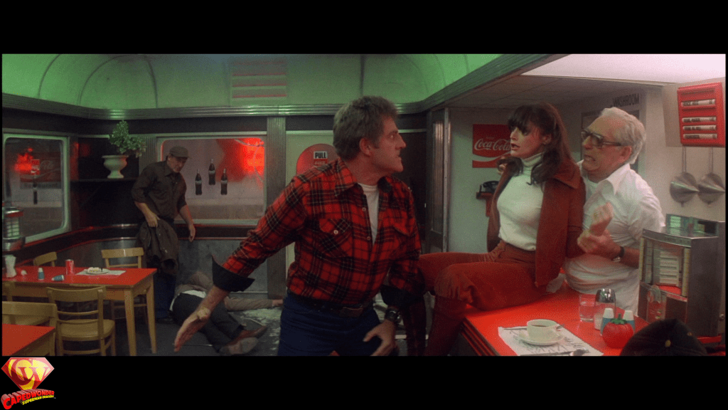 Another edit, which I mentioned in my earlier blog “Every Nook and Cranny” about all of the added footage in the TV cut of II, occurred only in the ABC edit during the first diner scene. As Rocky gets ready to leave, he says, “I don’t like your meat anyway.” This was slightly cut in the ABC broadcast to, “I don’t like you anyway,” to remove any potential sexual connotation towards Lois. This edit did not appear in the international telecasts, however.